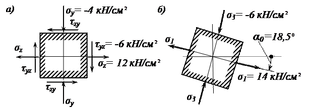 кН/см2 (рис. 3.6, а). Найти главные напряжения