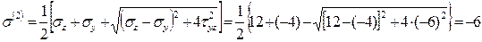 Для плоского напряженного состояния одно из главных напряжений, возникающее на площадке с нормалью x, равно нулю.