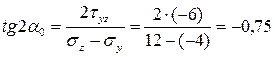 , определяющие положение двух взаимно перпендикулярных площадок, на которых возникают главные напряжения