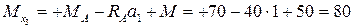 имеется скачок вниз на величину этой реакции, то есть на 40 кН.