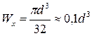 – момент сопротивления балки при изгибе. Для балки круглого поперечного сечения он равен: