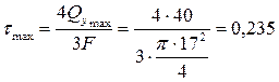то есть условие прочности и по касательным напряжениям выполняется, причем, с большим запасом.