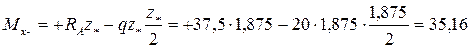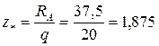 – экстремум, поскольку эпюра перерезывающей силы в этом месте проходит здесь через нулевое значение.