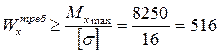 Определяем требуемый момент сопротивления балки из условия прочности по нормальным напряжениям