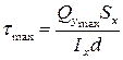 Наибольшие касательные напряжения, возникающие в поперечном сечении двутавровой балки, вычисляются по формуле