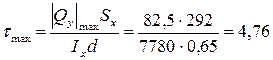 Проверяем прочность балки по наибольшим касательным напряжениям