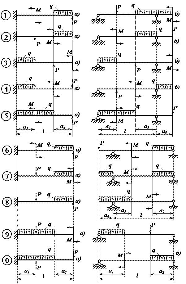 Варианты исходных данных к задаче для самостоятельного решения "прямой поперечный изгиб"